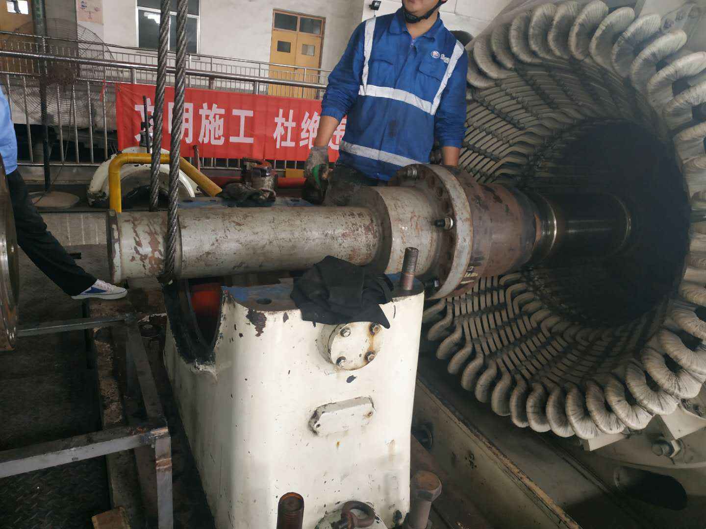 由沈阳文杰文化传承与发展有限公司承建的山东海能化学有限责任公司机组B15MW背压式汽轮机组(原 C25抽汽凝汽式机组)大修工程现已完成凝结水泵、油站检修工作,发电机前后轴承座基础垫铁研磨工作,目前蒸汽室螺栓的拆卸工作及发电机定子与转子的清理工作陆续启动,下气缸吊隔板工作也在稳步进行中。